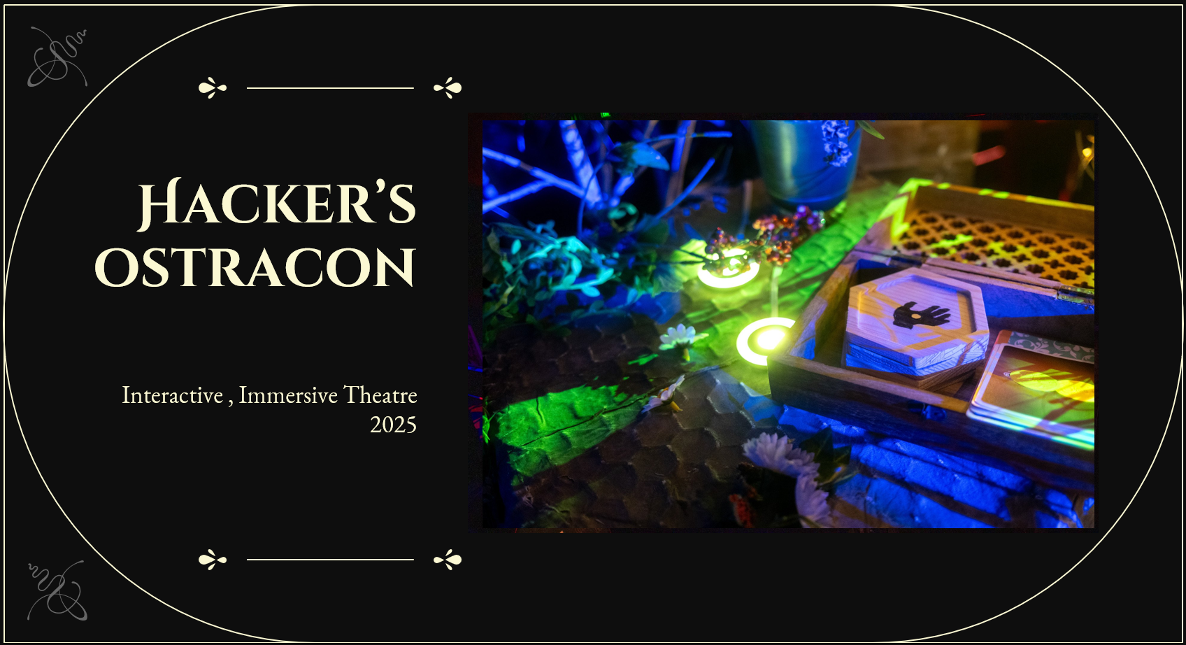 I have been crafting my own interactive performances since I was a child and through my love of live-action gaming, role-play, table top and video games, puzzles, play, and avatars, I have remained intricately involved in the world of immersive, emergent performance.