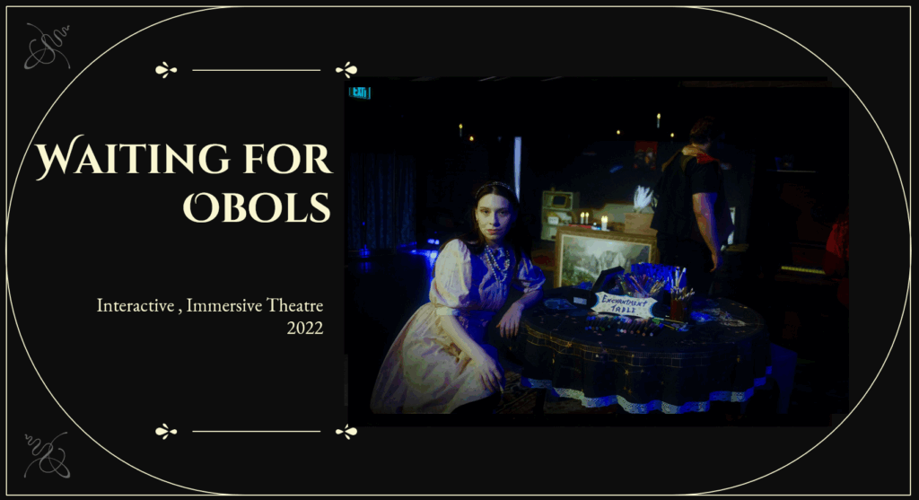 However, a very unique opportunity presented itself to me when I joined Clark University. During my first couple of weeks, while at a welcome event, my friend and peer, Ezra Cove (3D artist) introduced me to our new colleague, Jessie Darrell-Jarbadan (costume design) from the Theater department. We decided to gather, along with our friend/peer Amanda Theinert (psychology of games), for tea at my office and our shared love of performance, theater, and exciting technologies came together in the form of a collaborative proposal for a recently announced Innovation grant ($7,500) — an Interactive Theatre course! I wrote up the proposal, hedged my bets we’d make it happen one way or another, and started work on “Waiting for Obols.”